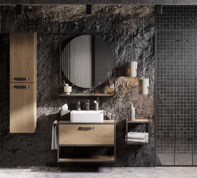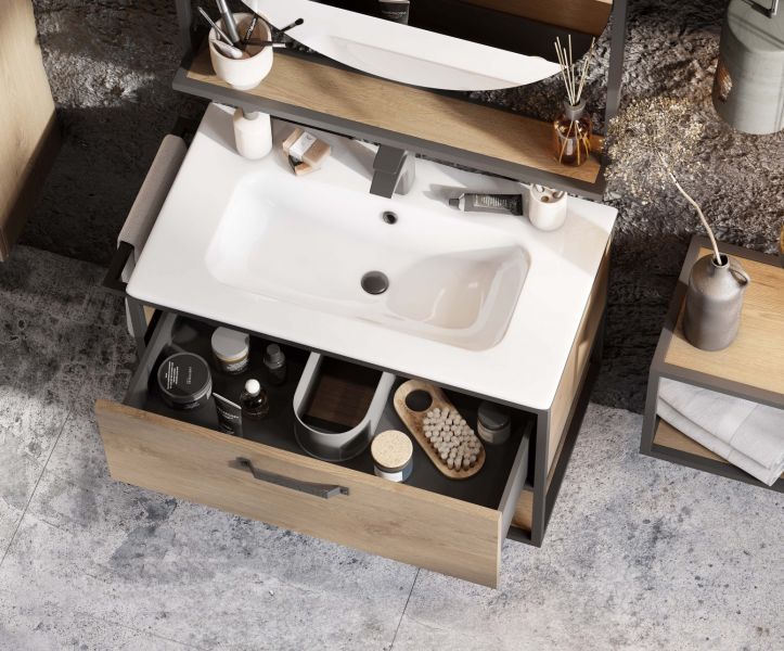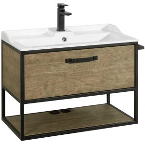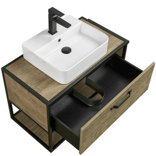 • Тумба Лофт Фабрик 80 в цвете дуб кантри – это сочетание насыщенного древесного декора и благородства металла
