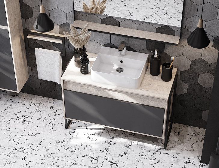 Тумба под раковину Акватон Лофт Урбан 100см дуб орегон/серый графит 1A247701LQX60