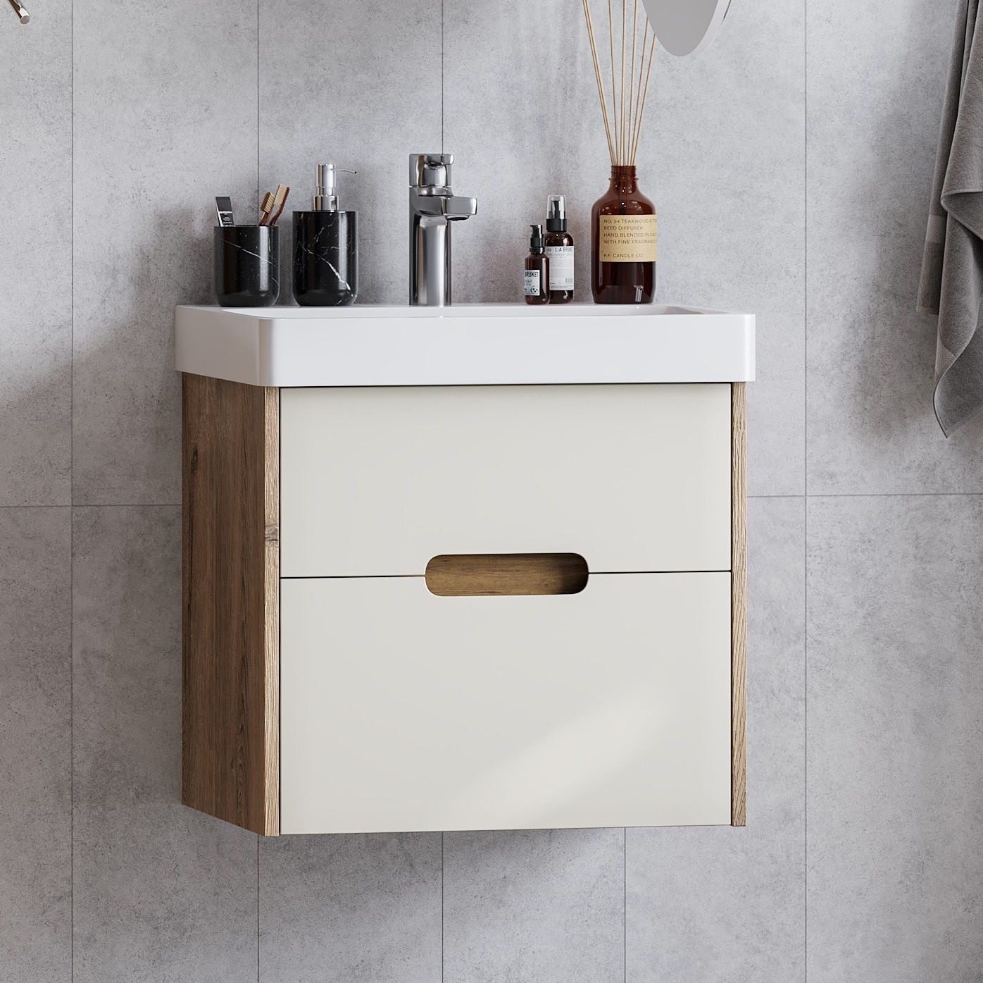 Тумба под раковину Акватон Оливия 55см бежевый/дуб веллингтон 1A254201OLVG0