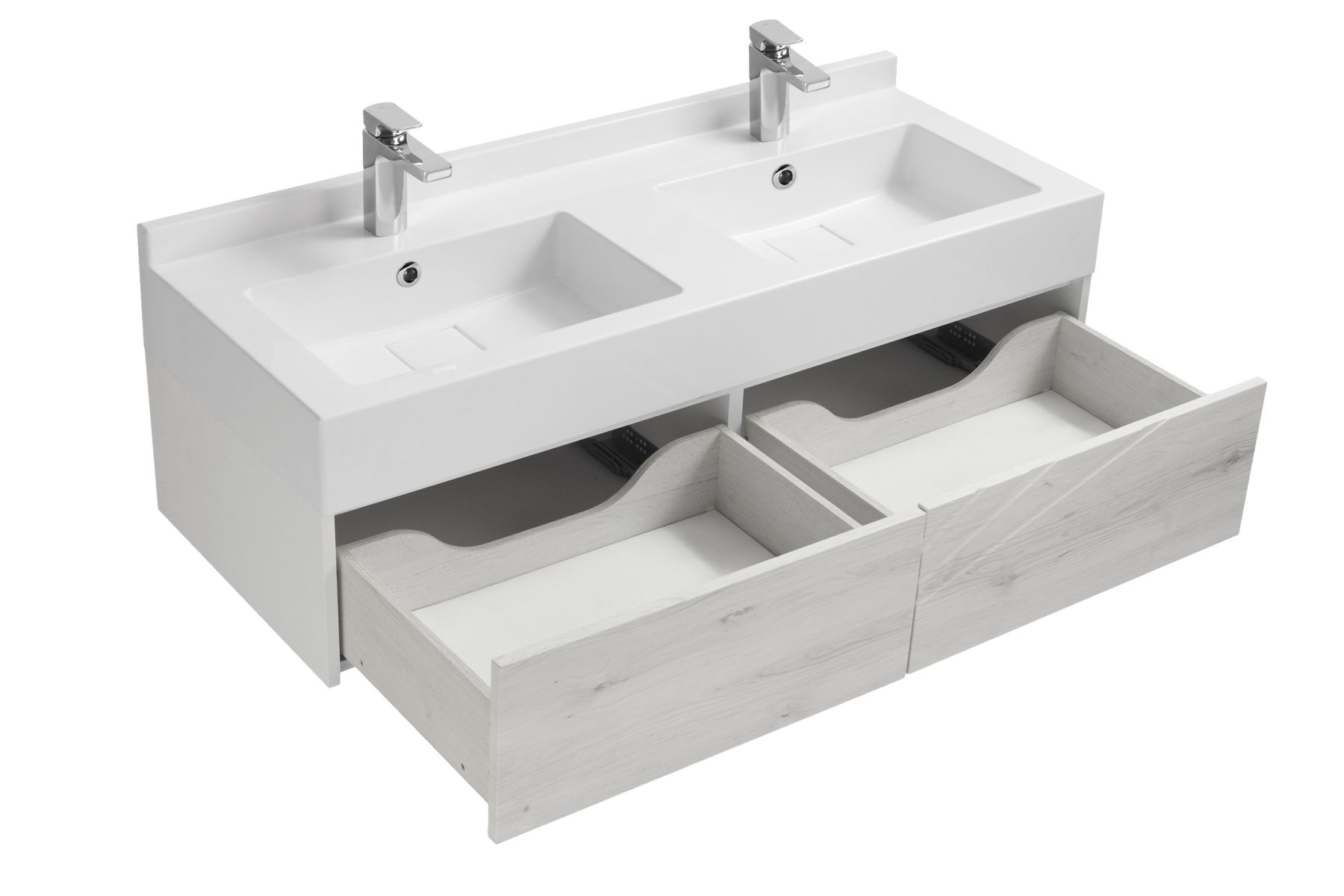 Тумба для комплекта Акватон Сакура 120 ольха наварра не только прекрасное украшение для ванной комнаты, но и несравненное функциональное решение любого санузла. Подвесной способ установки дает возможность не только визуально увеличить пространство, но и обеспечивает быстрый и удобный доступ для уборки.В производстве используют только качественные влагостойкие материалы (ДСП), в составе которых полностью отсутствуют опасные вещества. Серия Сакура отличается превосходным дизайном с соблюдением всех серьезных элементов современного стиля. Основным цветом, в котором выполнена тумба под раковину Акватон Сакура является белый, безупречно впишется в любой дизайн проект. Тумба под раковину предусматривает удобную и вместительную систему хранения, состоящую из ящиков. Важные размеры товара: ширина 119.6 см, глубина 46.6 см, высота 24 см.Страной бренда Акватон является Россия, все товары производятся с выполнением соответствующих стандартов качества, что позволяет быть полностью уверенными в долговечности и надежности. Тумба для комплекта Акватон Сакура 120 ольха наварра правильный выбор в современном дизайне ванной, придающий уникальность всему помещению, при этом сохраняя функциональность.