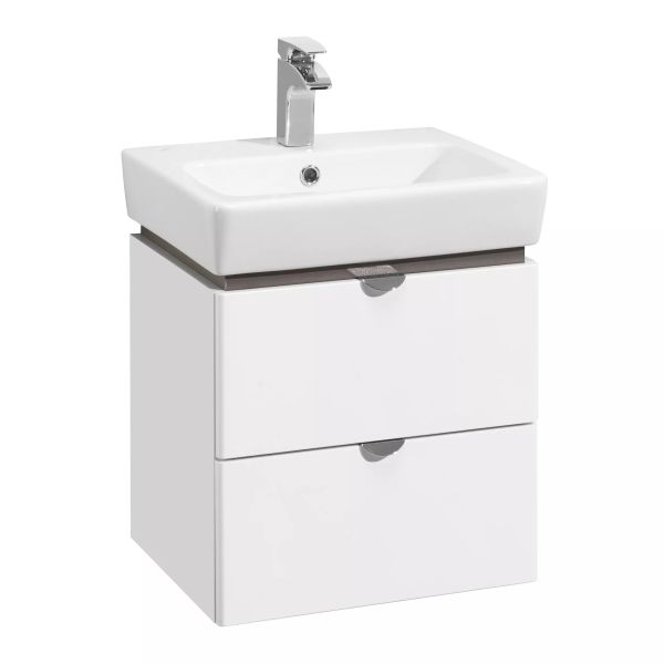 Вместительная и функциональная тумба Скай PRO 60 от AQUATON в современном стиле гармонично сочетает ультрабелые глянцевые фасады с декоративной вставкой в цвете серый кашемир - элегантное и практичное решение для удобной организации пространства в небольших ванных комнатах. Корпус модели из влагостойкой ЛДСП и фасады из высококачественной МДФ покрыты белой полиэфирной краской ультрафиолетового отверждения, которая гарантирует безупречный внешний вид, а также прочность и долговечность. Тумба имеет два выдвижных ящика, оснащенных направляющими с интегрированной системой плавного закрывания. Белоснежные глянцевые фасады подчеркивают эргономичные хромированные ручки. Для комплектации тумбы идеально подходит раковина Нео от бренда Santek.
