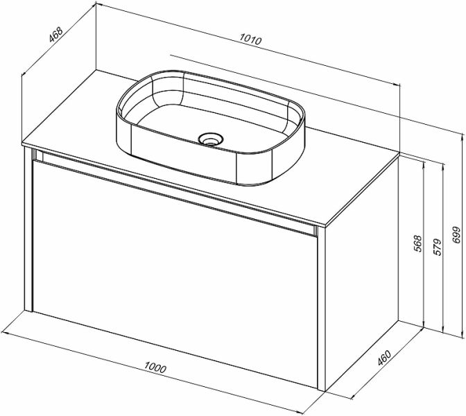 Габариты корпуса тумбы (ШхВхГ): 1000х568х460 мм.