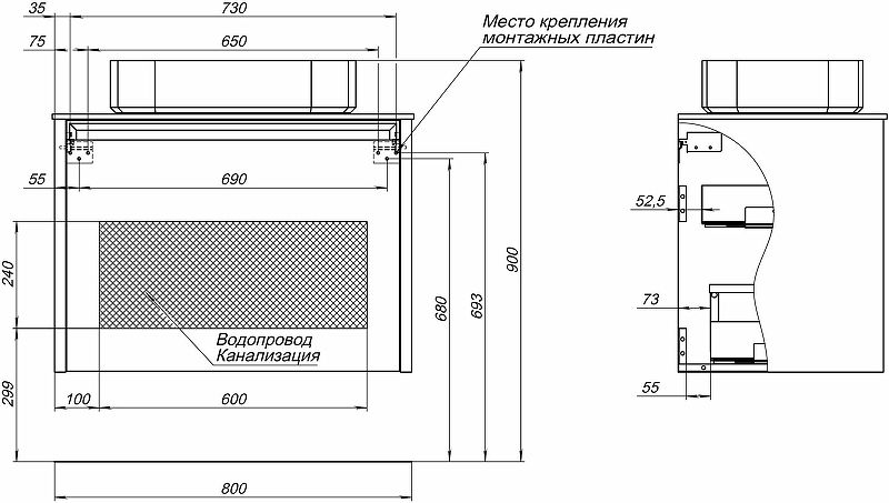Габариты корпуса тумбы (ШхВхГ): 800х568х460 мм.