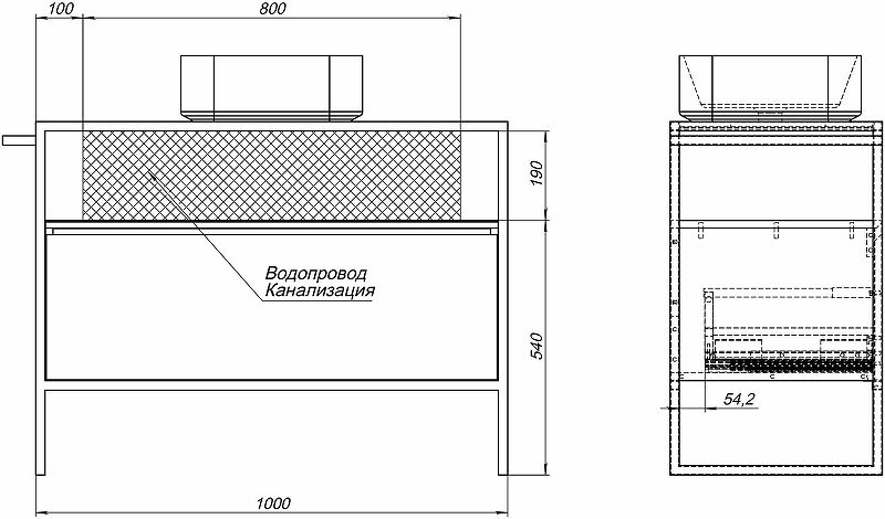 В комплекте поставки:Тумба под раковину (металлический каркас, выдвижной ящик).