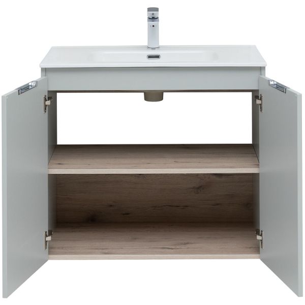 Тумба под раковину Aquanet «Алвита» New 80 в сером цвете. Две дверцы со скрытыми гор... Подробнее