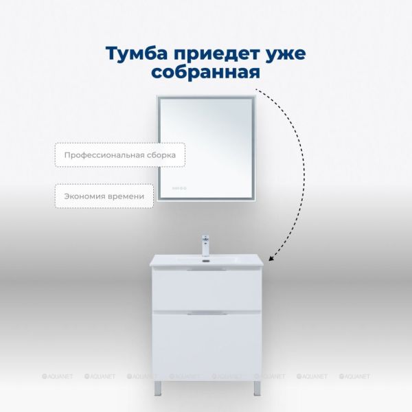 Тумба под раковину Aquanet Алвита New 70 напольная, белый матовый. Внутренние детали изготовлены... Подробнее