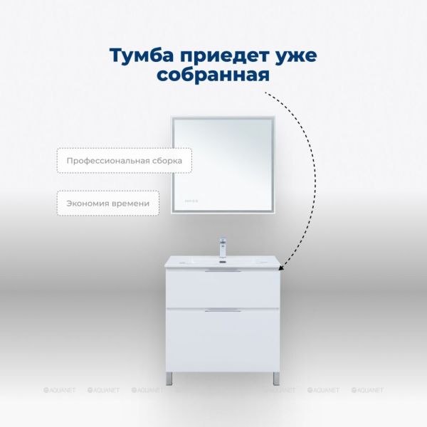 Тумба под раковину Aquanet Алвита New 80 напольная, белый матовый. Внутренние детали изготовлены... Подробнее
