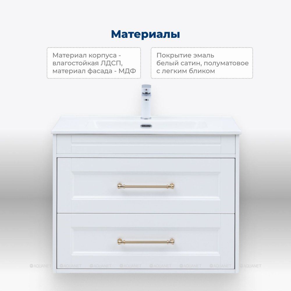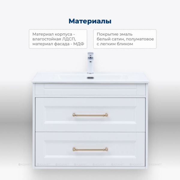 Тумба под раковину Aquanet Бостон new 80 белый сатин