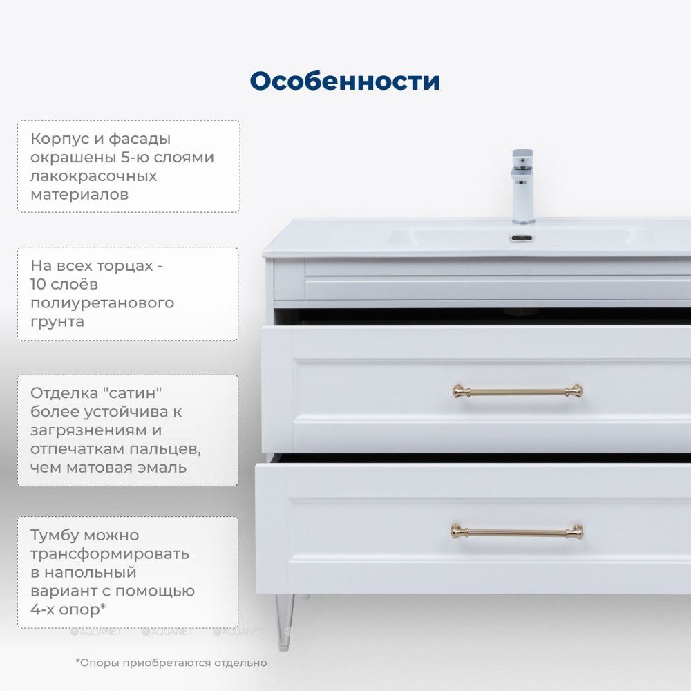 Тумба под раковину Aquanet Бостон New 347183 100 см белый сатин купить