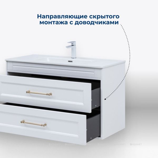 Тумба под раковину Aquanet Бостон new 100 белый сатин Стильная и функциональная тумба под рак... Подробнее