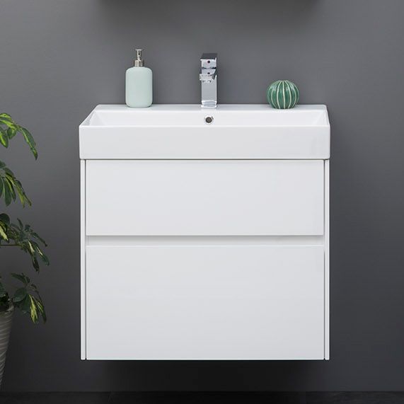 Тумба Aquanet Бруклин 60 белого цвета предназначена для подвесной установки Изделие отвечает тенденциям минимализма Аскетизм четких линий и обтекаемых форм в ней доведен до совершенства В модели нет никаких выделяющихся деталей, и даже ручки интегрированные, когда открывание происходит за счет выступающей детали верхней или нижней части фасада, которая срезана под углом, в результате чего образуется выемка, служащая ручкой В тумбе ручка устроена таким образом у верхнего ящика в нижней части фасада, а у нижнего – в верхней Такое простое решение добавляет изысканности внешнему виду изделия Раковина из керамики с тонкими изящными бортиками идет размер в размер с тумбой, ширина которой 60 см, в результате чего все изделие выглядит как единое целое Корпус изделия выполнен из выкрашенного белой краской влагостойкого ЛДСП, фасады – из МДФ На контрасте с белизной внешних деталей стильно смотрится корпус выдвижных ящиков, выполненный в цвете «дуб сонома» Нижний ящик тумбы имеет большую зону хранения, верхний разделен на несколько отделений, которые помогут грамотно разложить все необходимое по своим местам Тумба предлагается без раковины