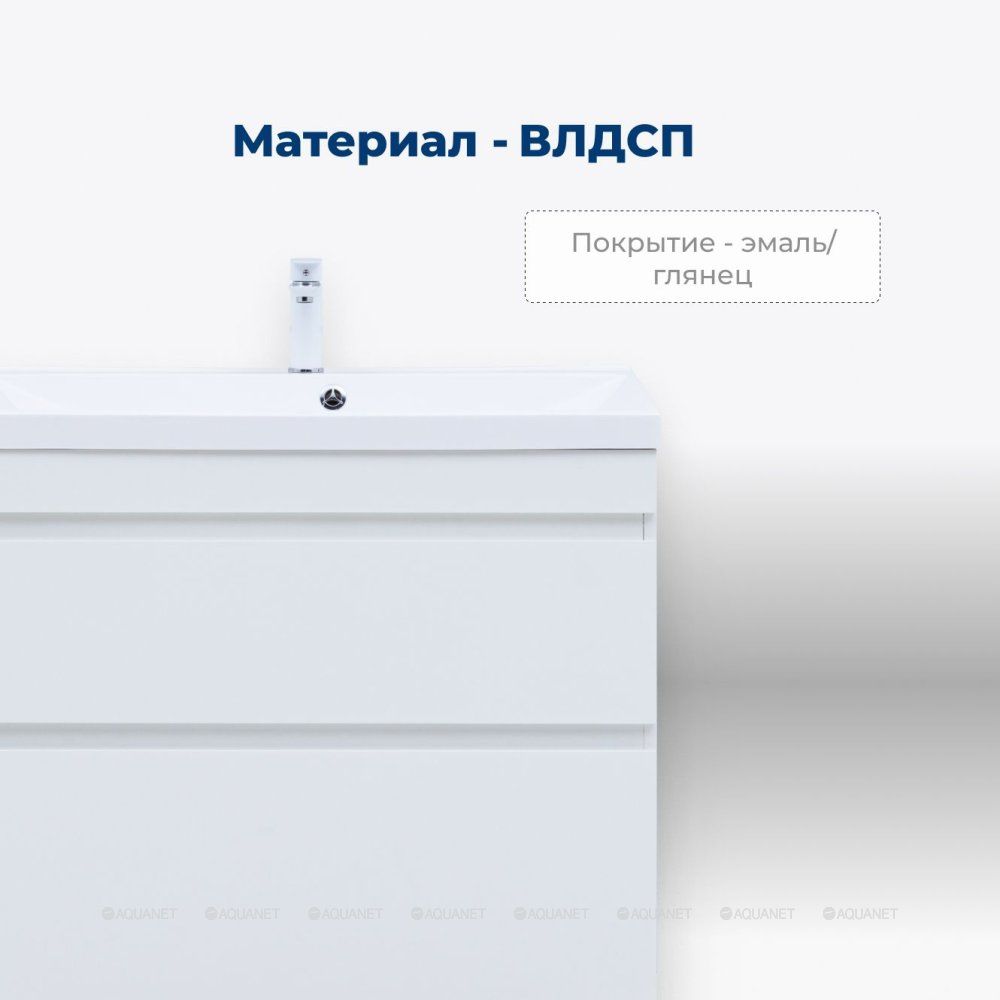 Корпус и фасады изготовлены из влагостойкой ЛДСП с эмалевым покрытием, что обеспечивает устойчивость к влаге и долговечность. Глянцевая поверхность придает тумбе стильный внешний вид, легко вписывающийся в любую обстановку.