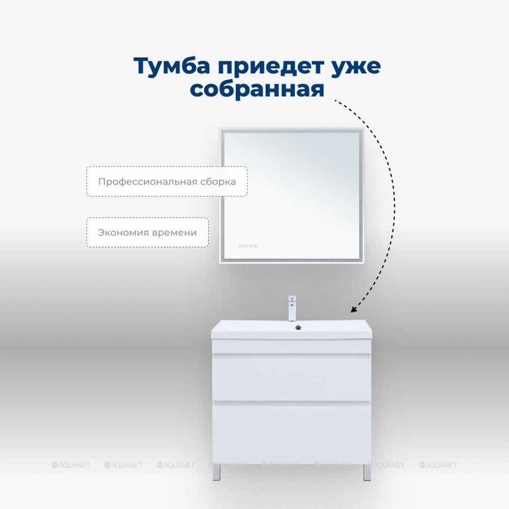 Тумба под раковину Aquanet Нота New 90 белый глянец Элегантное и практичное решение для ван... Подробнее
