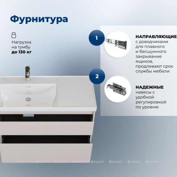• Вместительный нижний ящик – удобное хранение банных принадлежностей.