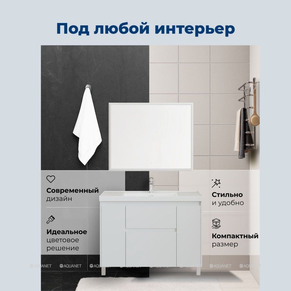 Тумба под раковину Aquanet Nova Lite 2.0 110 в белом цвете с глянцевым покрытием станет практичным дополнением ванной комнаты. Ее лаконичный дизайн сочетается с разными стилями интерьера — от минимализма до классики.