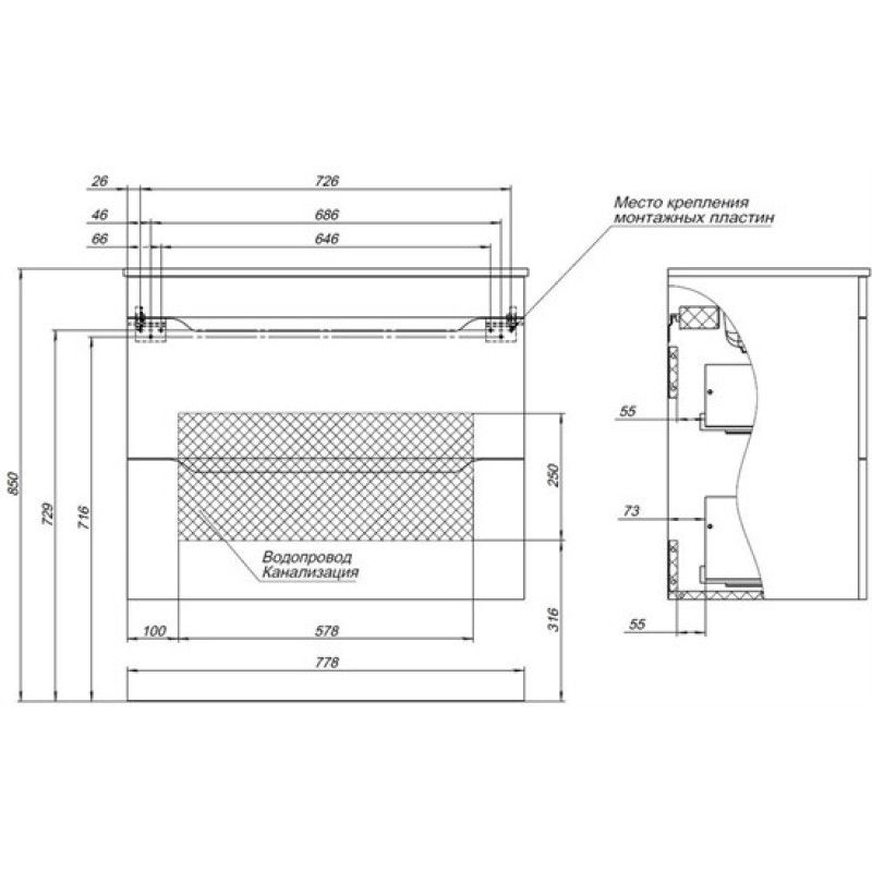 Aquanet Практика 80 сочетает функциональность и современный дизайн.