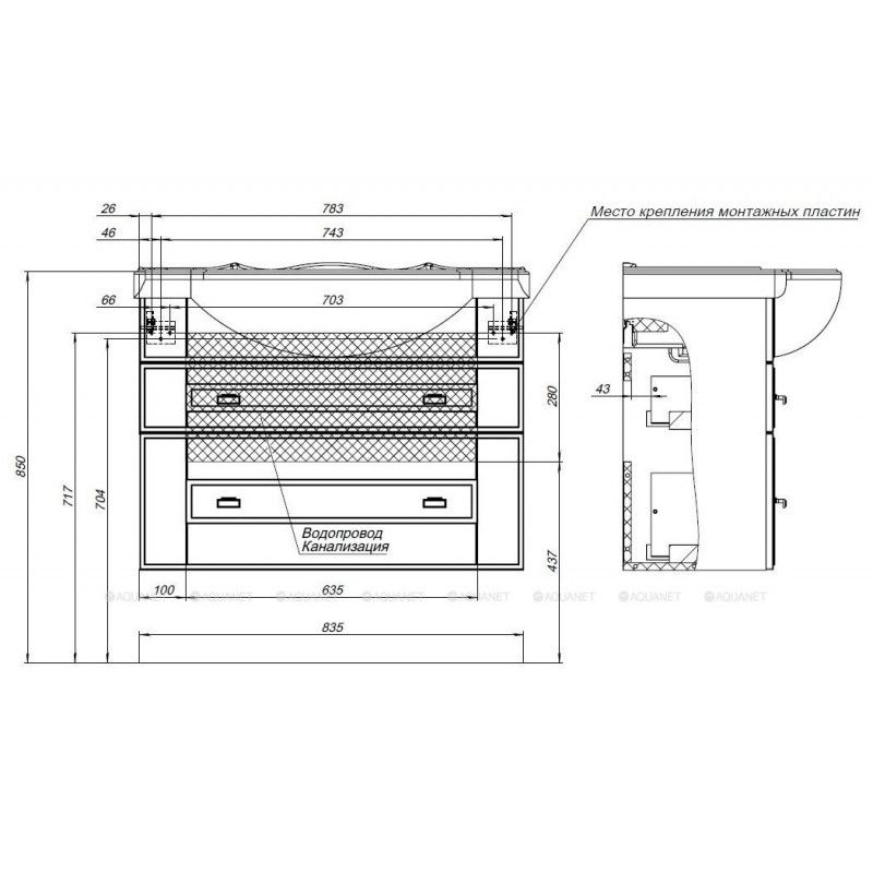 Механизм доводчика позволяет дверцам закрываться плавно и не хлопать. Раковина Aquanet Yatao 85 YB-1085 сделана из керамики в классическом стиле. По периметру расположен бортик, не позволяющий мыльнице или стакану с щеткой и пастой падать на пол или в ванную. Габариты — 850х330х602 мм.