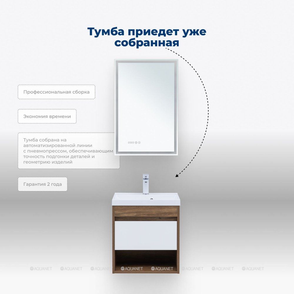 Тумба под раковину Aquanet Тренд 50 дуб рустикальный/белый сатин : Изысканное сочетание фун... Подробнее