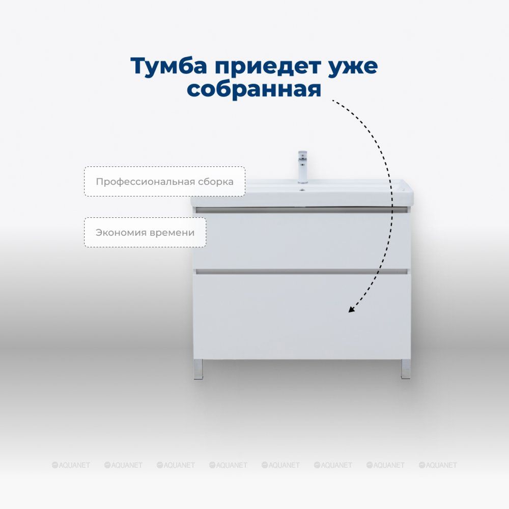 Тумба под раковину Aquanet Вега 100 напольная в отделке "белый глянец" – это воплощение эл... Подробнее
