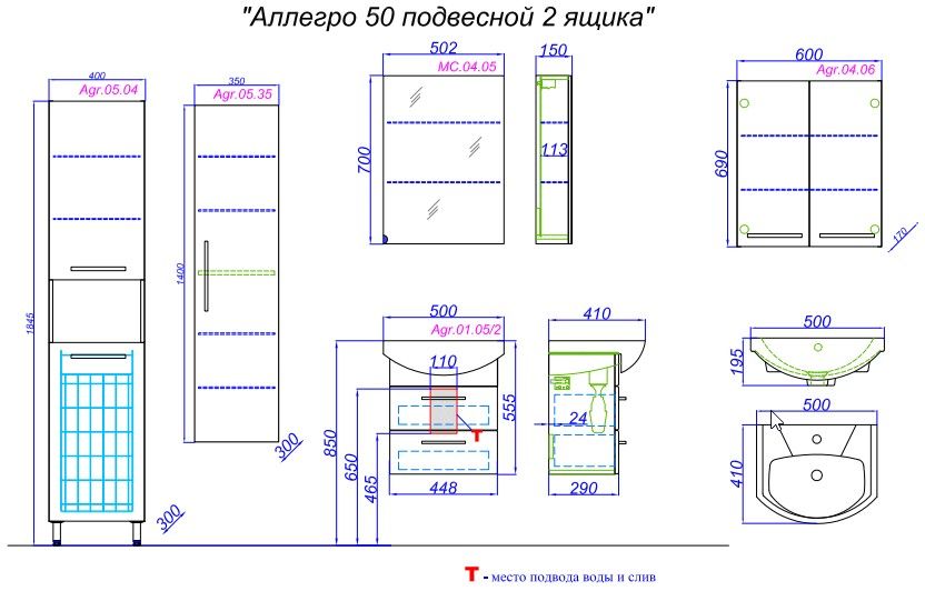 Тумба под раковину Aqwella Аллегро 50 Agr.01.05/2 купить