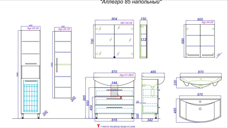 Тумба под раковину Aqwella Аллегро 85 Agr.01.08/3
