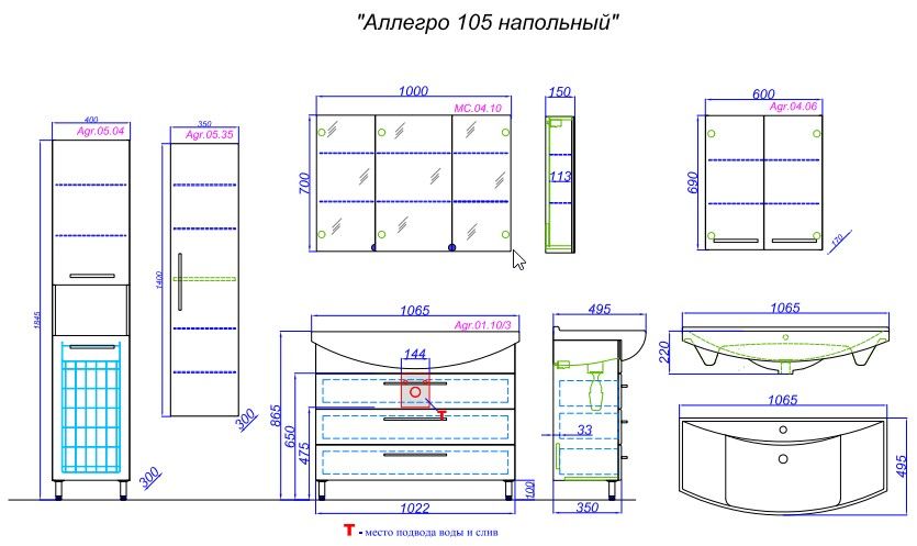 Тумба под раковину Aqwella Аллегро 105 Agr.01.10/3