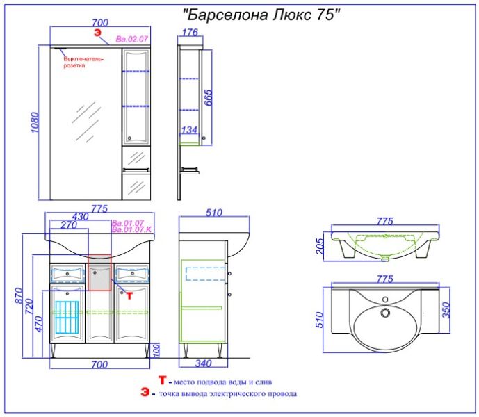 Ширина 70смВысота 83смГлубина 34смAqwella - это мебель для ванной премиум-класса.
