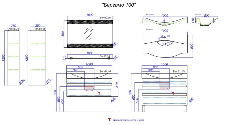 Тумба под раковину Aqwella Бергамо 100 Ber.01.10/n/A