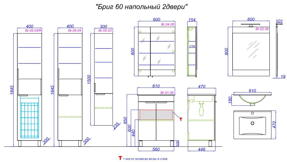 Тумба под раковину Aqwella Бриг 60 Br.01.06/Gray купить