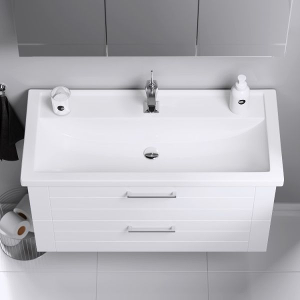 Тумба под раковину Aqwella Manchester MAN01102 100 смПодвесная тумба в белом глянцевом цвете с двумя ящиками с умывальником