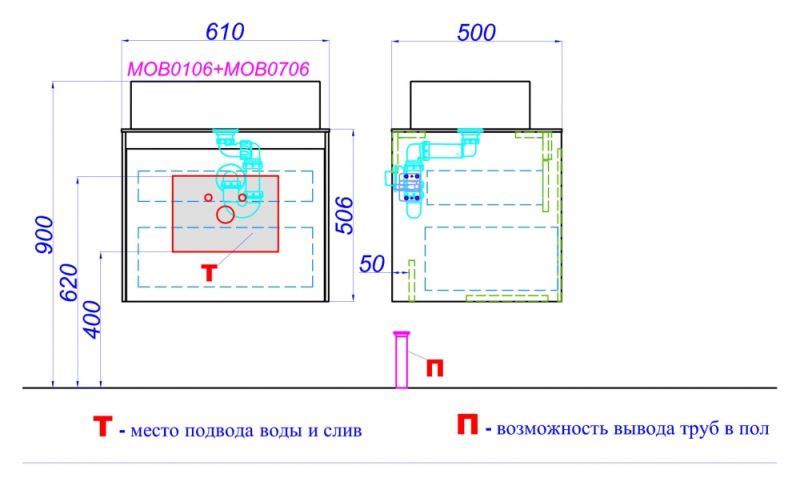Корпус тумбы под раковину Aqwella Mobi 60 MOB0106BS купить