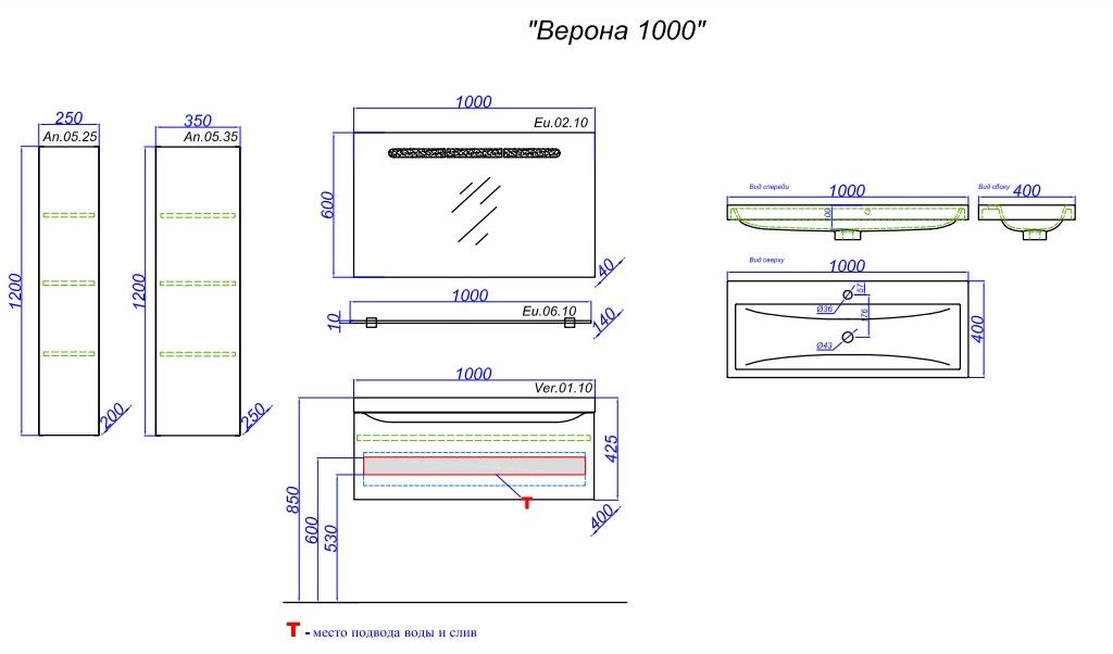 Тумба под раковину Aqwella Верона 80 Ver.01.08/VT