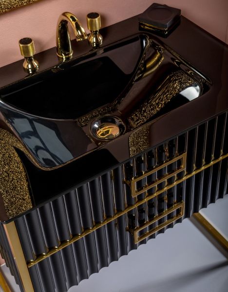 Тумба под раковину Armadi Art Monaco 80см чёрный/золото 866-080-BG