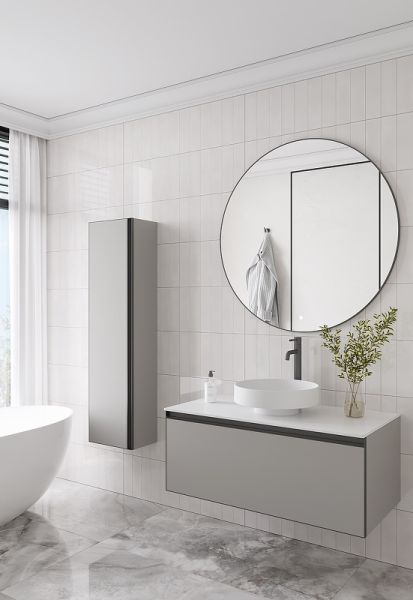 Главной особенностью коллекции являются обрамления фасадов из алюминия в самых трендовых цветах: графит, матовое золото, матовый черный и серебро. Эти обрамления идеально дополняют сантехнику в ванной комнате.