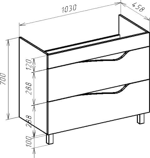 Вместительные ящики: Два объемных выдвижных ящика на шариковых направляющих с доводчиками предлагают удобное хранение для полотенец, косметики и бытовых принадлежностей.