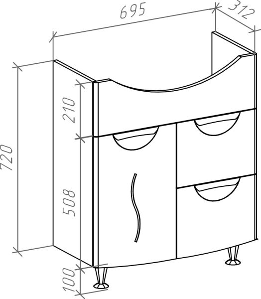 Материал: влагостойкий ЛДСП (корпус), МДФ с глянцевым покрытием (фасад)
