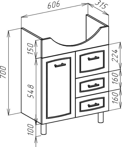 Тумба под раковину Bellezza Классик 65см белый 00000011078