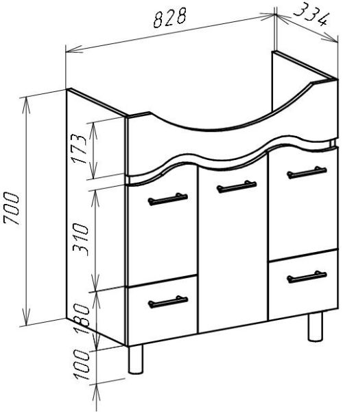 Многоуровневое хранение: Три распашные дверцы и два выдвижных ящика позволяют организовать пространство для полотенец, косметики, бытовой химии и гигиенических принадлежностей, обеспечивая легкий доступ ко всему содержимому.