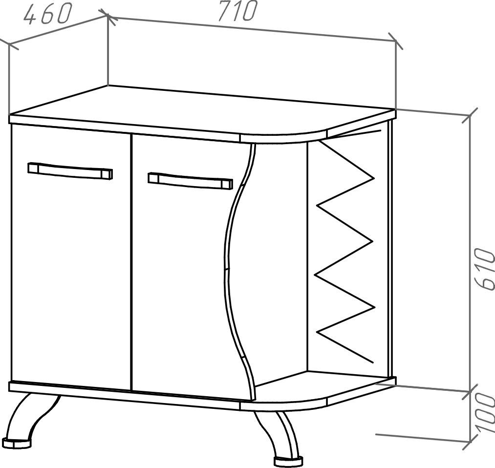 Тумба под раковину Bellezza Рио 70см левая белый/чёрный 00000007193