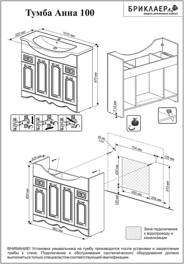 Тумба под раковину Бриклаер Анна 4627125411434 100 см белый купить