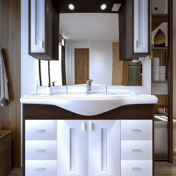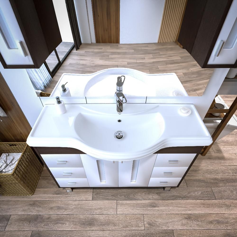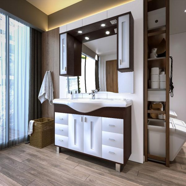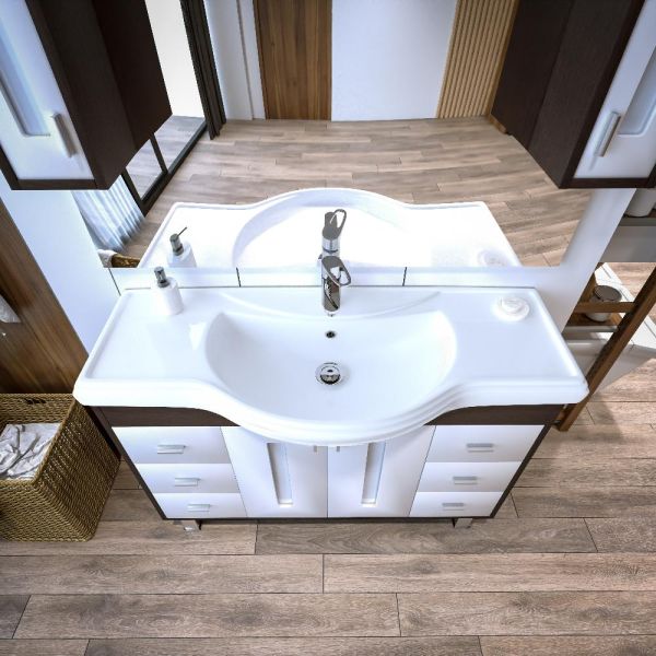 Удобная система хранения позволяет размещать все необходимое для гигиенических процедур, а её продуманные размеры отлично вписываются даже в небольшие помещения. Стильные ручки и элегантные фасады придают тумбе особый шарм, а разнообразие цветовых решений позволит выбрать модель, соответствующую любому интерьеру – от классического до модерн.