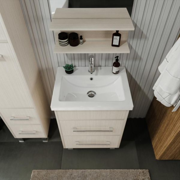Удобная система хранения позволяет размещать все необходимое для гигиенических процедур, а её продуманные размеры отлично вписываются даже в небольшие помещения. Стильные ручки и элегантные фасады придают тумбе особый шарм, а разнообразие цветовых решений позволит выбрать модель, соответствующую любому интерьеру – от классического до модерн.