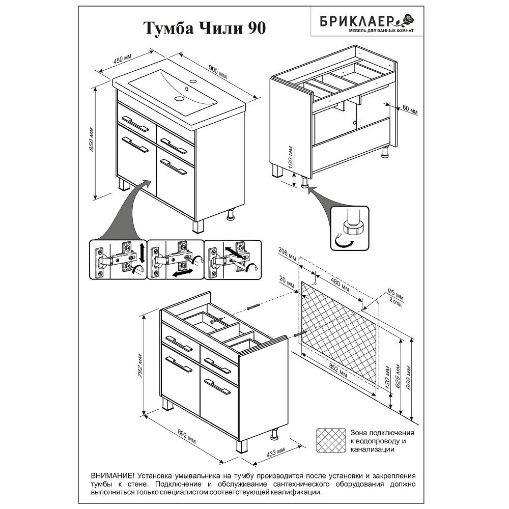 Тумба под раковину Бриклаер Чили 4627125415029 90 см светлая лиственница купить