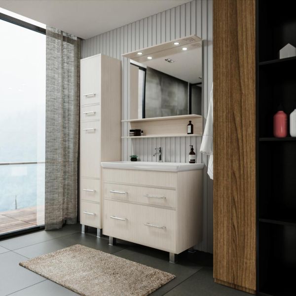 Удобная система хранения позволяет размещать все необходимое для гигиенических процедур, а её продуманные размеры отлично вписываются даже в небольшие помещения. Стильные ручки и элегантные фасады придают тумбе особый шарм, а разнообразие цветовых решений позволит выбрать модель, соответствующую любому интерьеру – от классического до модерн.
