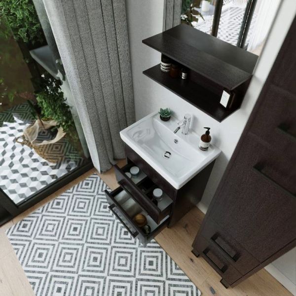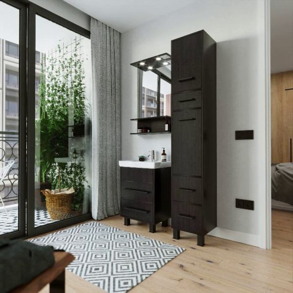 Удобная система хранения позволяет размещать все необходимое для гигиенических процедур, а её продуманные размеры отлично вписываются даже в небольшие помещения. Стильные ручки и элегантные фасады придают тумбе особый шарм, а разнообразие цветовых решений позволит выбрать модель, соответствующую любому интерьеру – от классического до модерн.