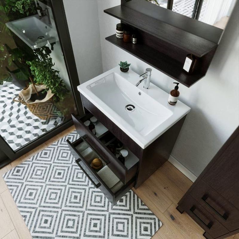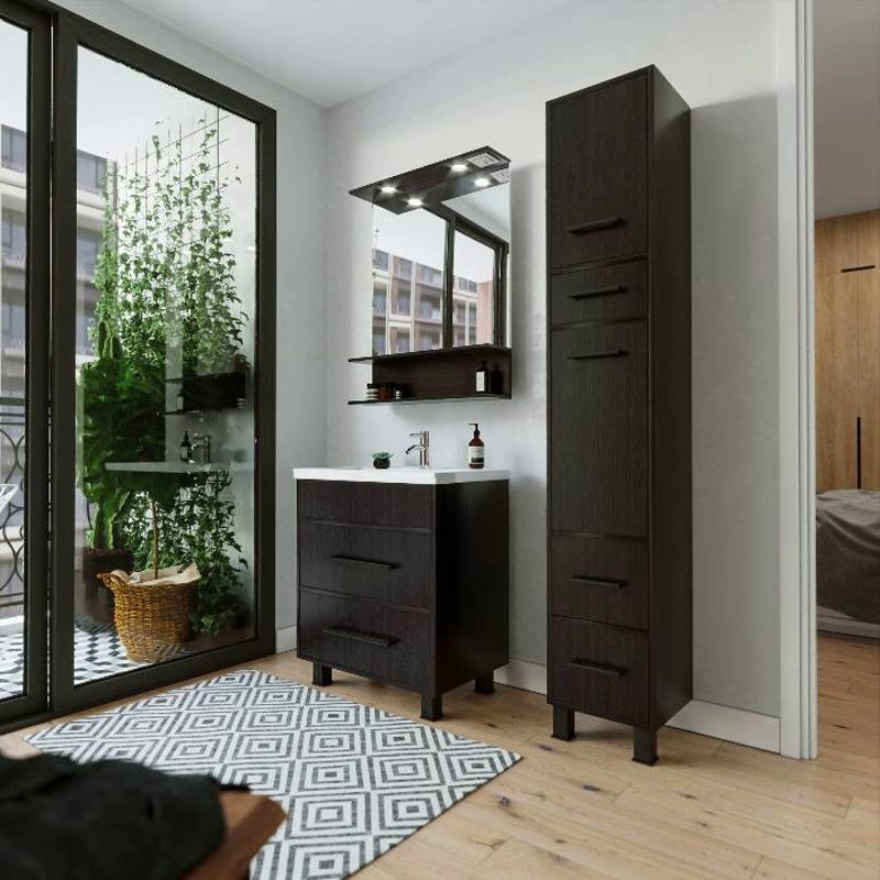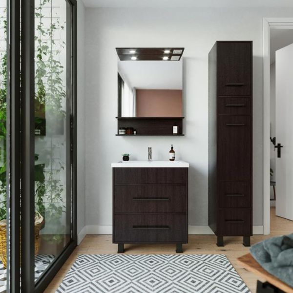 Удобная система хранения позволяет размещать все необходимое для гигиенических процедур, а её продуманные размеры отлично вписываются даже в небольшие помещения. Стильные ручки и элегантные фасады придают тумбе особый шарм, а разнообразие цветовых решений позволит выбрать модель, соответствующую любому интерьеру – от классического до модерн.