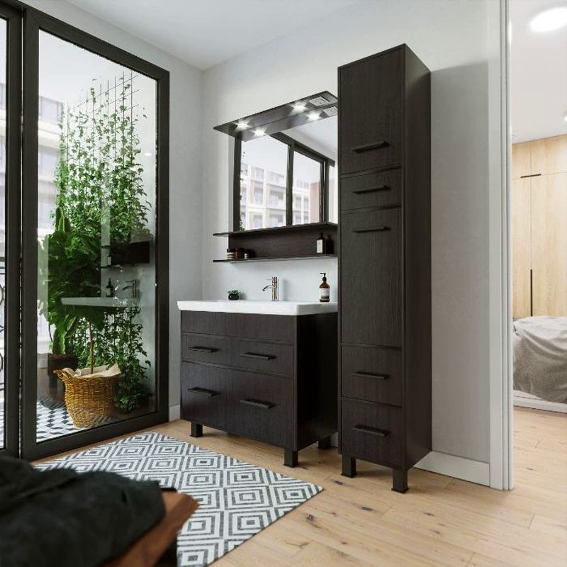 Удобная система хранения позволяет размещать все необходимое для гигиенических процедур, а её продуманные размеры отлично вписываются даже в небольшие помещения. Стильные ручки и элегантные фасады придают тумбе особый шарм, а разнообразие цветовых решений позволит выбрать модель, соответствующую любому интерьеру – от классического до модерн.