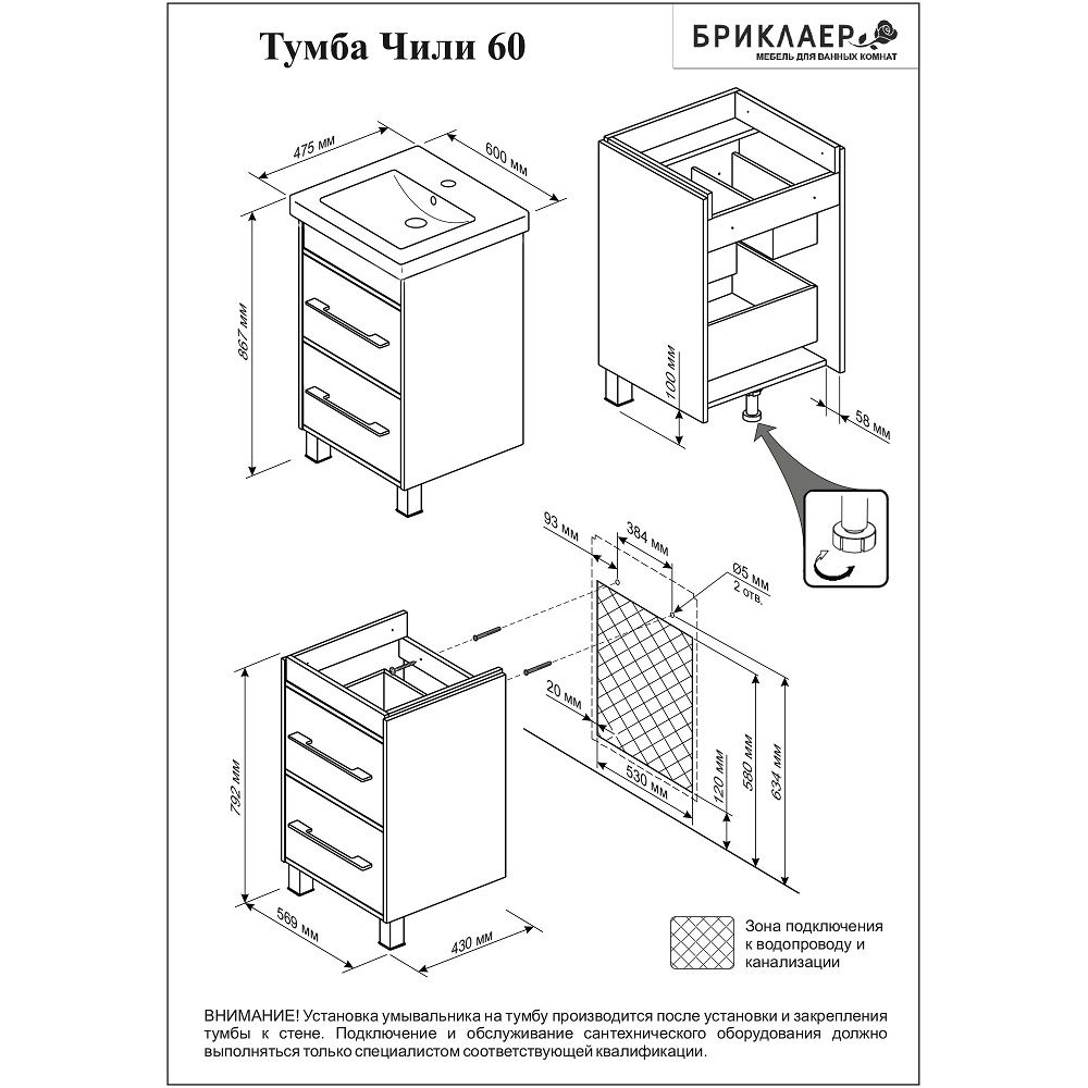 Тумба под раковину Бриклаер Чили 4627125415142 60 см венге