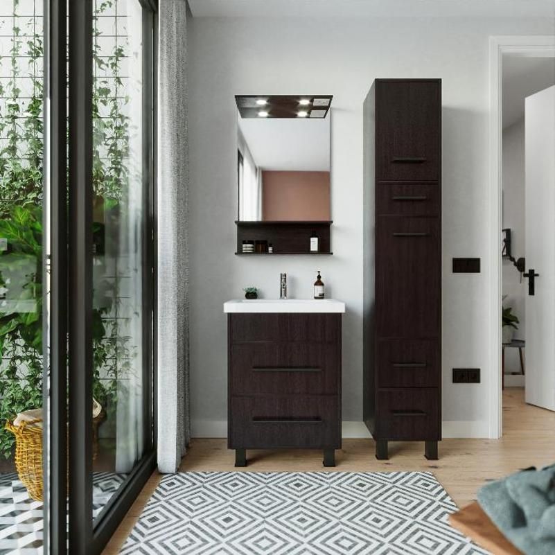 Удобная система хранения позволяет размещать все необходимое для гигиенических процедур, а её продуманные размеры отлично вписываются даже в небольшие помещения. Стильные ручки и элегантные фасады придают тумбе особый шарм, а разнообразие цветовых решений позволит выбрать модель, соответствующую любому интерьеру – от классического до модерн.
