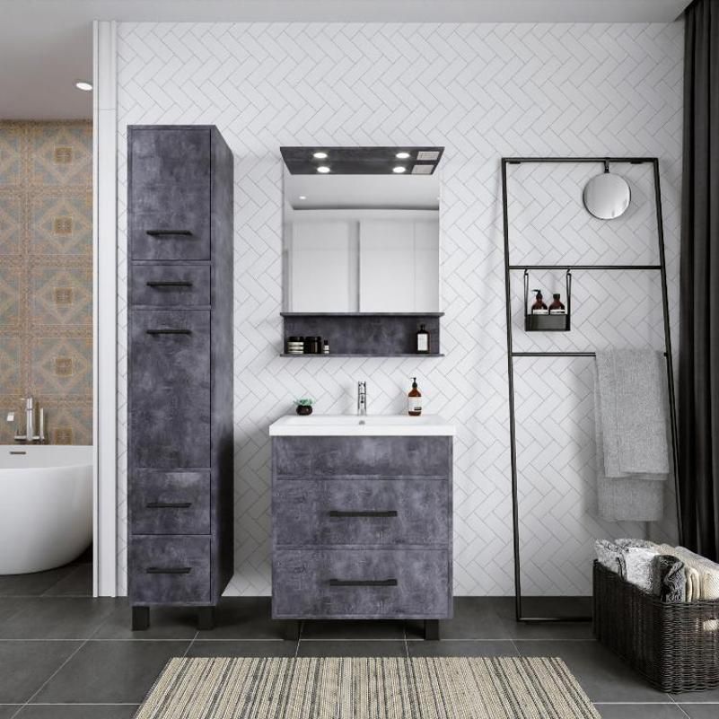 Удобная система хранения позволяет размещать все необходимое для гигиенических процедур, а её продуманные размеры отлично вписываются даже в небольшие помещения. Стильные ручки и элегантные фасады придают тумбе особый шарм, а разнообразие цветовых решений позволит выбрать модель, соответствующую любому интерьеру – от классического до модерн.